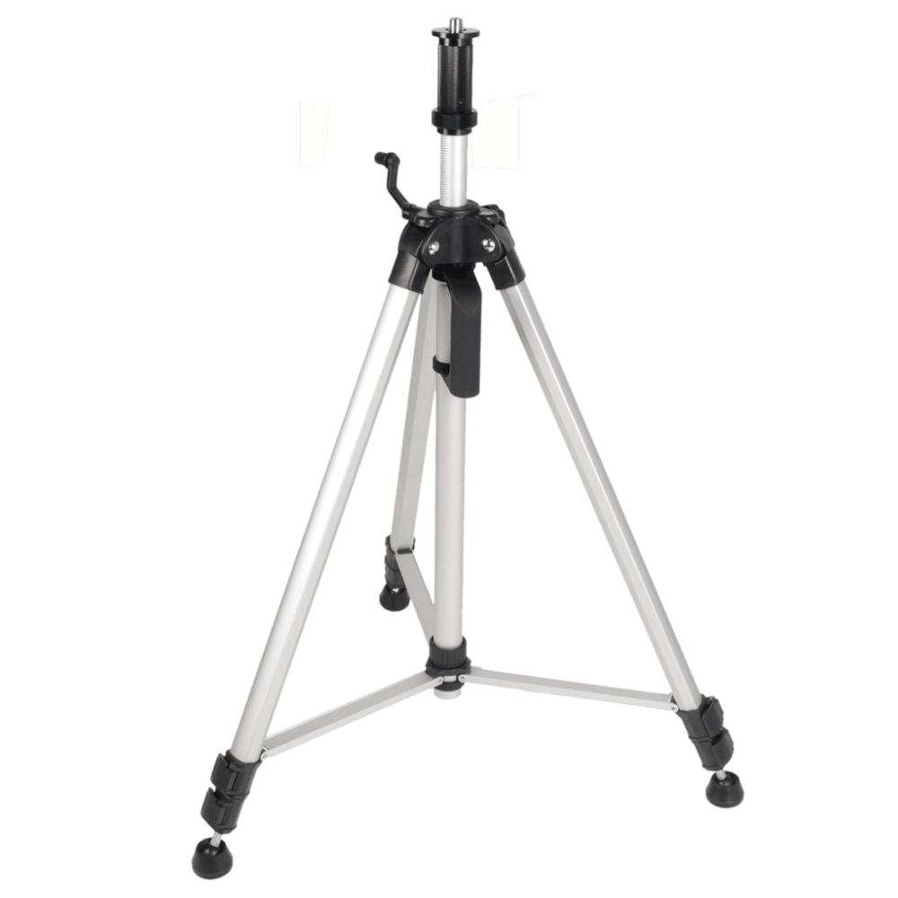 Set bevat: aluminium statief met opdraaibare kolom (30cm), verstelbaar van 90cm tot 200cm, geschikt voor binnengebruik met kruis- en multilijnlasers, geleverd in foedraal.