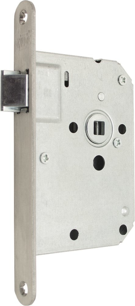 Standaard serie insteekslot, geschikt voor binnendeuren in woningbouw. Zamak dagschoot, met krukgat 8 mm. Dichte verzinkte slotkast 117x80x17 mm. Voorzien van afgeronde voorplaat 174x20x2,75 mm.