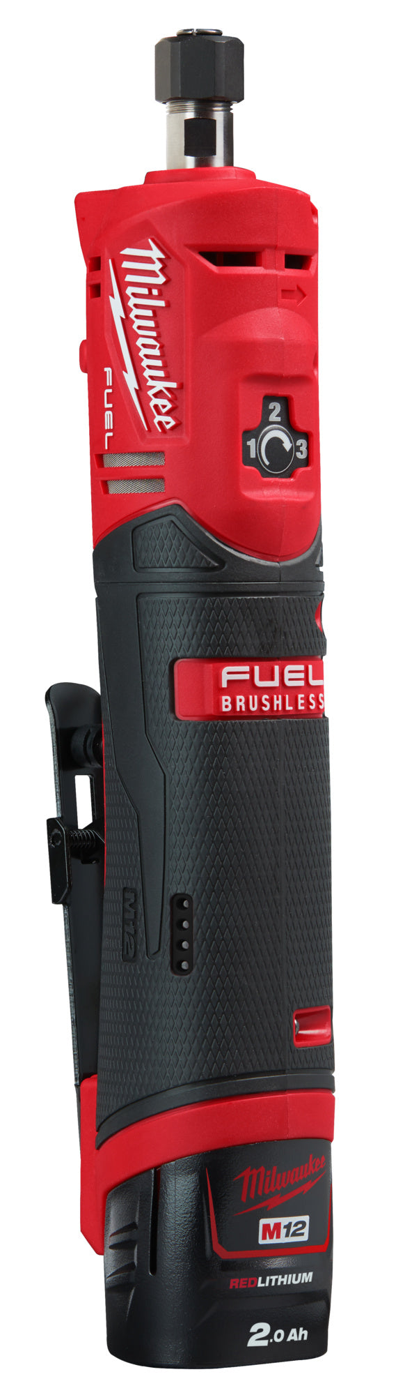 Rechte Stiftslijper, geleverd met 2 accu's en lader. Inclusief 6 en 8 mm spantang in transsporttas.