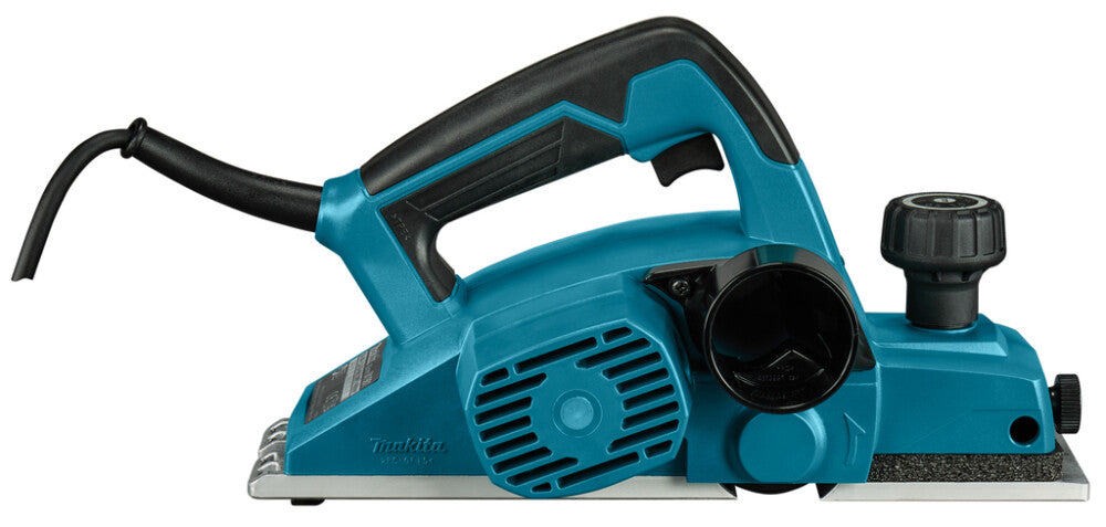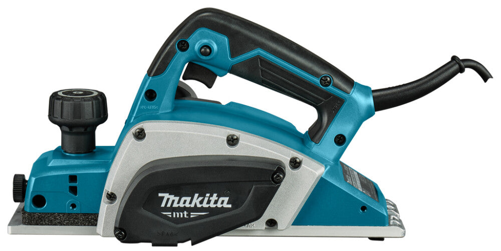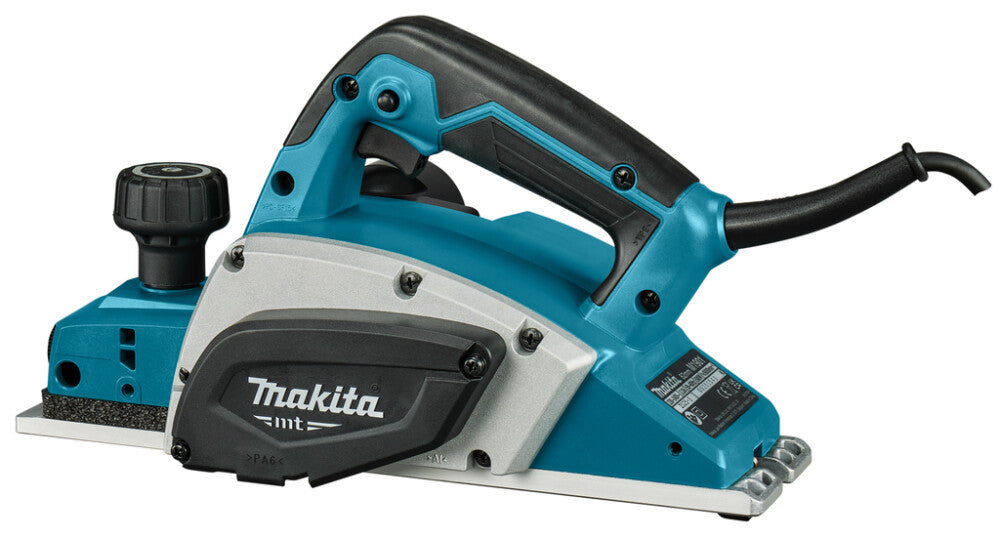 Set bevat: Makita M1901B instap‑schaafmachine 82 mm met accessoires zoals afstelmal, parallelgeleider, adapter, beitels en dopsleutel.