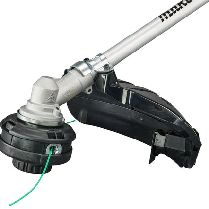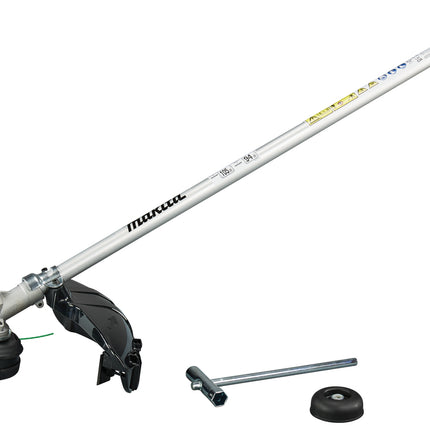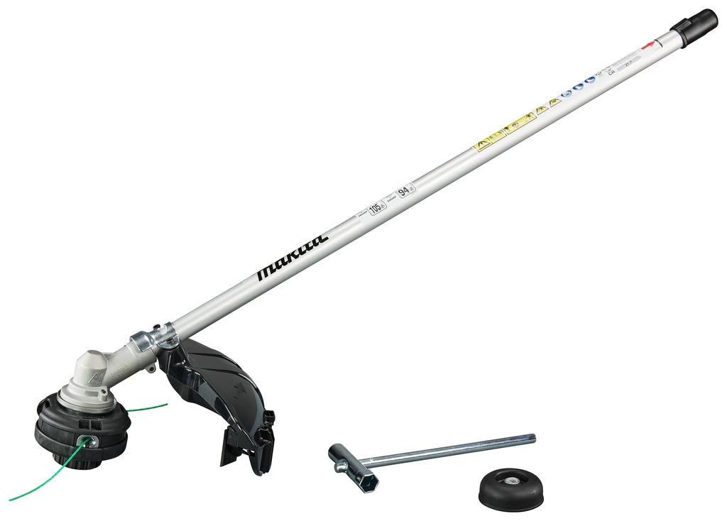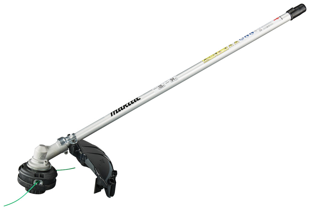 Trimmeropzetstuk met 30 cm snijbreedte, compatibel met Makita DUX18, DUX60 en UX01G combisystemen. Ondersteunt kunststof messen, metalen snijbladen en draadkoppen. Eenvoudig wisselen tussen snijgereedschappen dankzij gedeelde beschermkap.