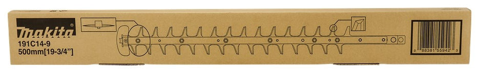 Set bevat: Vervangmessenset van 500mm met tandsteek 35mm en snijopening 23,5mm. Geschikt voor Makita DUN500W-serie heggenscharen.