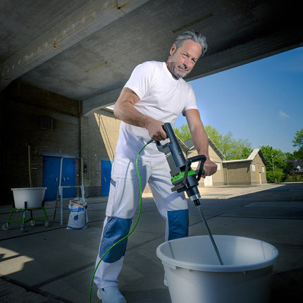 De krachtigste mixer met softgrip zijhandgreep en softstart toerentalregeling dat spatten voorkomt. Voor het langdurig mengen van grotere hoeveelheden mortel, specie, kant en klare pleister etc. tot 80 kg. Inclusief garde model ML-160 mm.