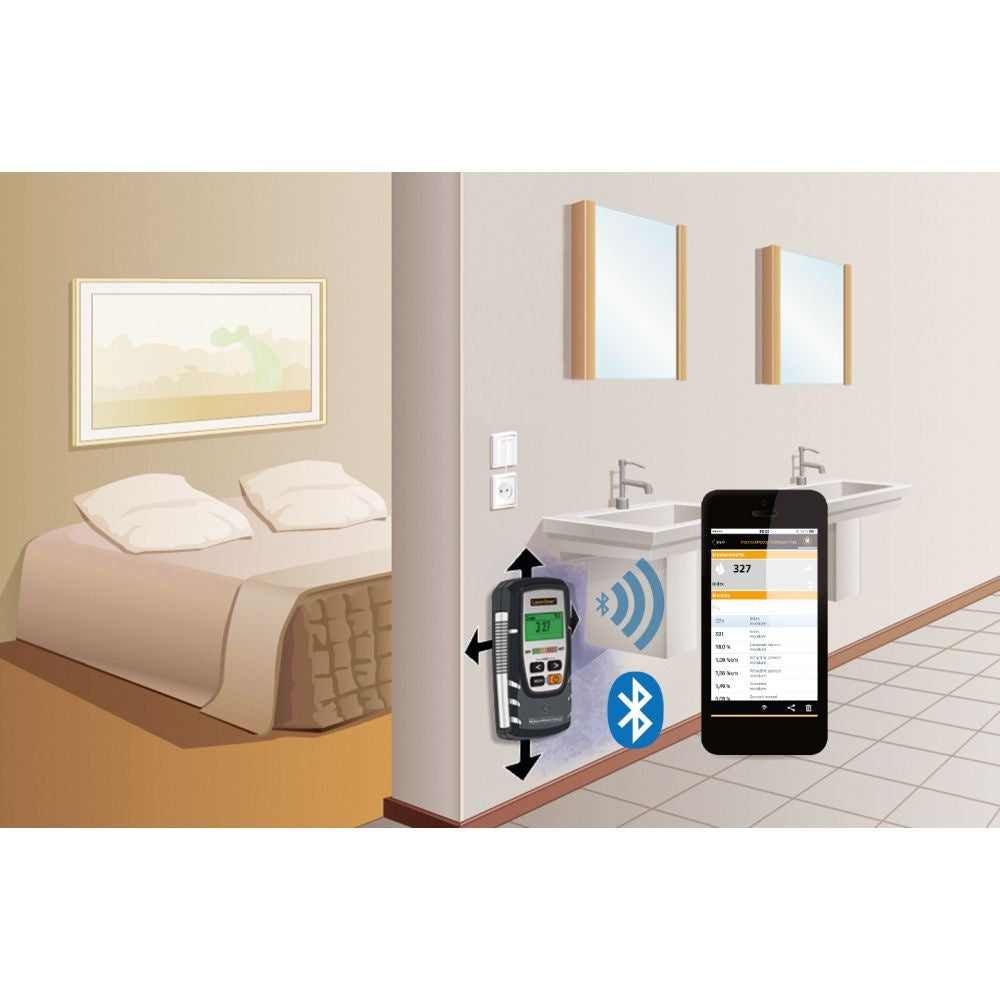 Professioneel meettoestel voor het meten van materiaalvocht met Bluetooth-interface. Geleverd inclusief batterijen in draagkoffer.