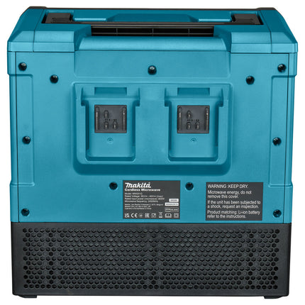 Magnetron zonder accu's en lader, geleverd in doos. Deze magnetron heeft een vermogen van 500W max.