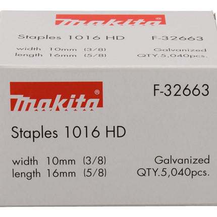 Gegalvaniseerde Makita 23 Gauge nieten 16mm 10,55x0,55x1,15mm (10mm Crown). Verpakkingseenheid: 5,040 stuks.