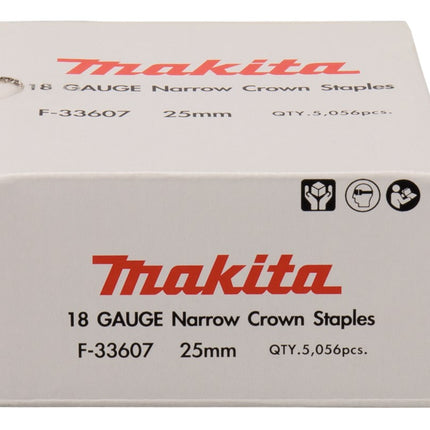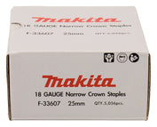 Makita 18 Gauge nieten 25mm 6,35x1,1x1,3mm (Narrow Crown). Verpakkingseenheid: 5,056 stuks.