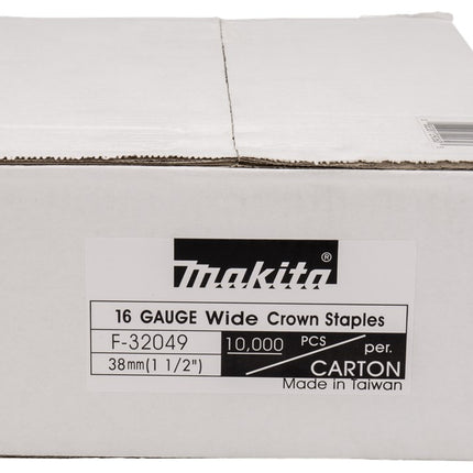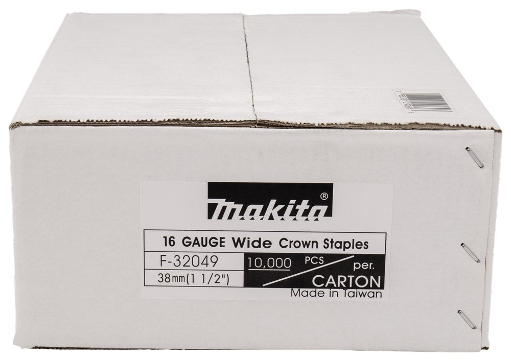 Makita 16 Gauge nieten 38mm 26,6x1,35x1,57mm (Wide Crown). Verpakkingseenheid: 10,000 stuks.
