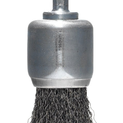 Makita penseelborstel met stift. Borstel met gegolfde draad. Deze penseelborstel is uitstekend geschikt voor het verwijderen van braam, slak, kalk, overtollig persmiddel bij kunststofproductie, verbrandingsresten en andere verontreinigingen van ijzer e...