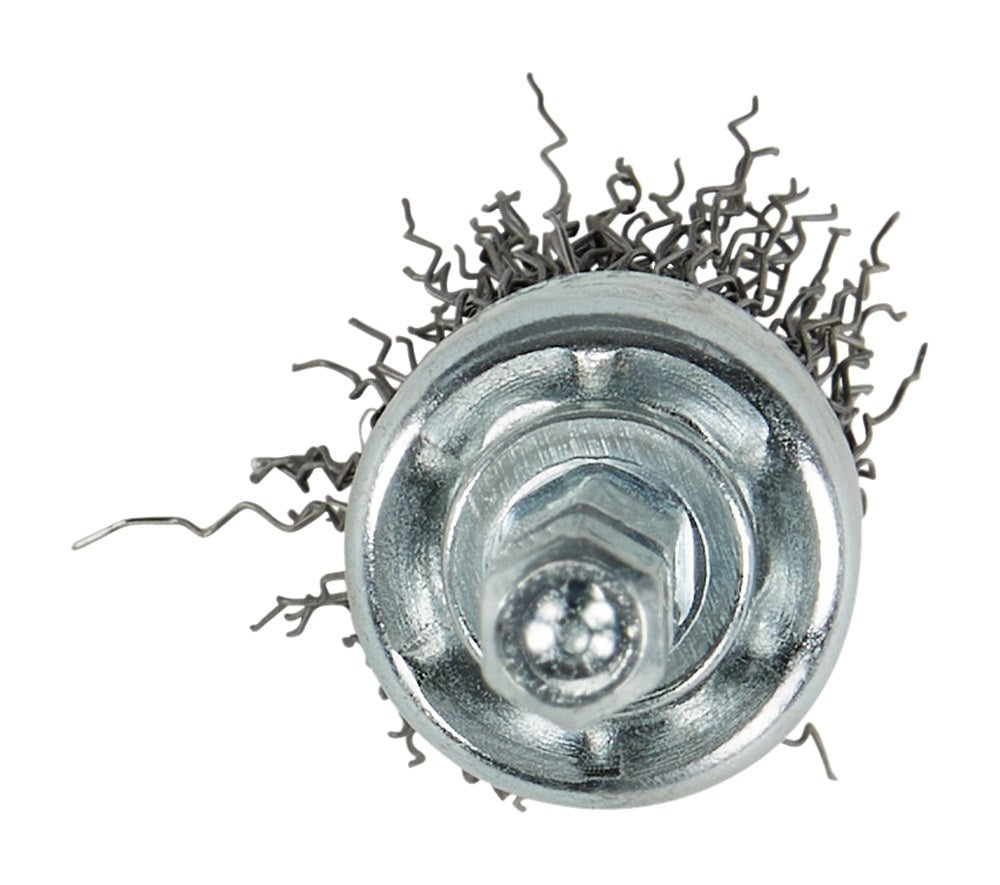 Makita penseelborstel 19mm met 1/4" vorm E aansluiting. Deze penseelborstel heeft geplooid staaldraad en is uitstekend geschikt voor het reinigen en verwijderen van verf, roest, aanslag en schilfers, of voor het ontbramen van ijzer of staal.