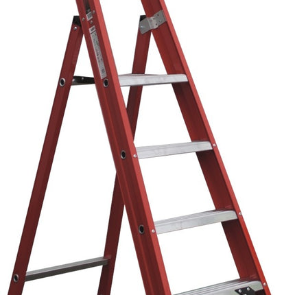 Model Magnus. Aluminium rood polyester gecoat. Geschikt voor professioneel gebruik, eenzijdig oploopbare trap. Lees meer