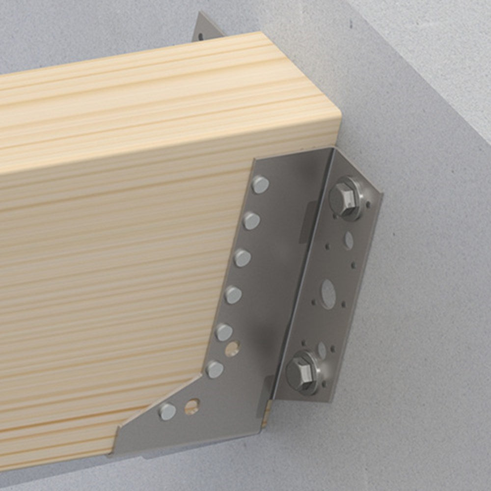 Balkdrager met zijflenzen, voor het bevestigen van dwarsbalken rechtstreeks tegen de muur of tegen een andere houten balk. Deze balkdrager wordt ook toegepast voor het maken van ravelingen in vloeren en daken. Aantal: 20 stuks.