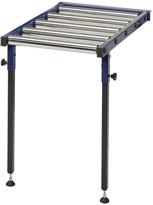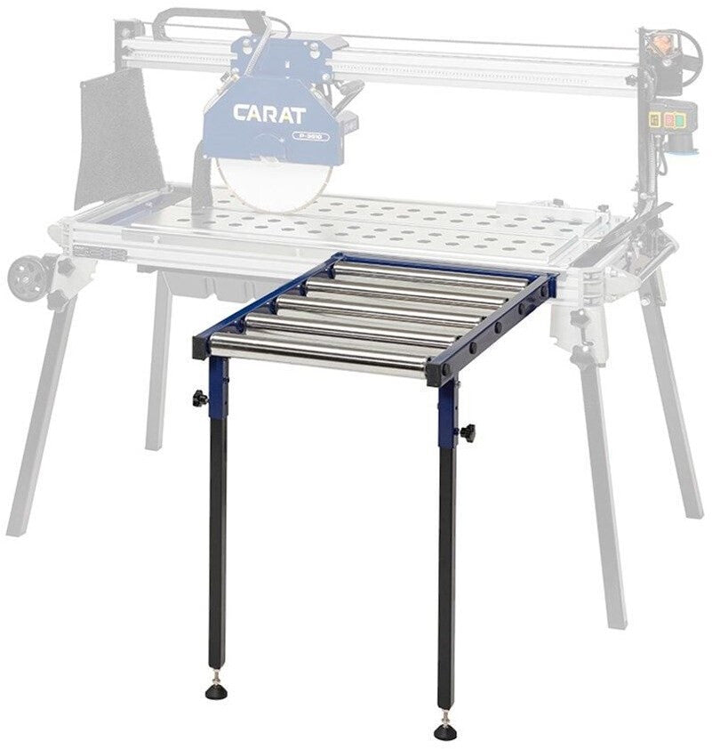 Set bevat: Robuuste rollenbaan voor efficiënte materiaalgeleiding bij Caracoup Alu en GP-3500 serie zaagmachines, inclusief installatiehandleiding.