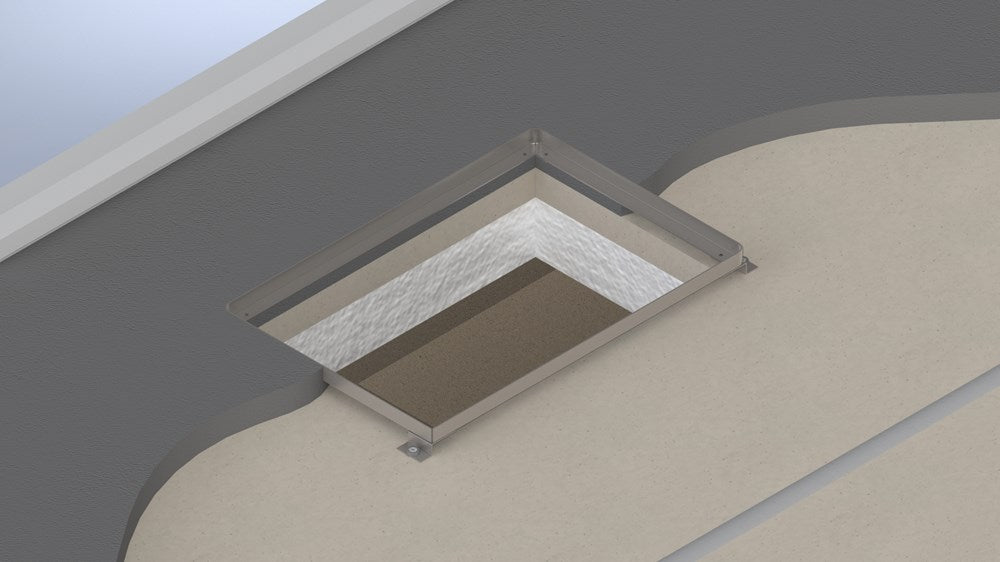 Rechthoekig randprofiel t.b.v. deurmat of vloerrooster uitsparing in een (cement)dekvloer. Staal voorzien van een deklaag van Zink-Magnesium voor hogere corrosiebescherming.