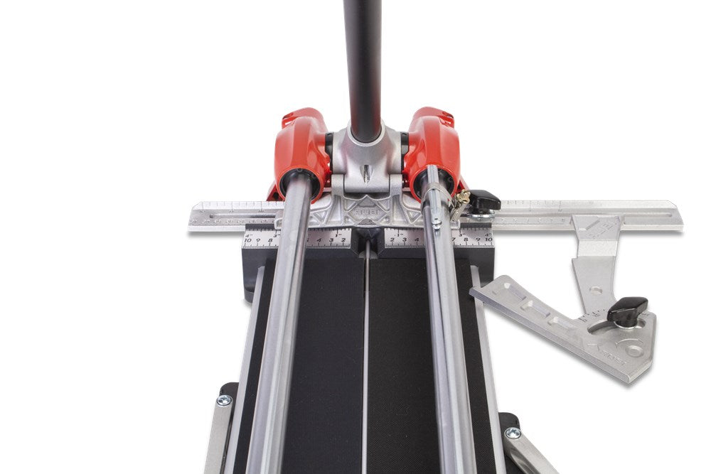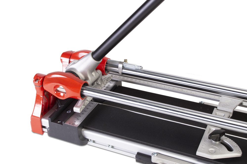 De tegelsnijder HIT-N is een robuuste en precieze keramische snijder, voor de meest veeleisende taken bij grootformaat keramische tegels.De HIT-N is ideaal voor het FREQUENT snijden van alle soorten keramische tegels (tegels, geëmailleerd aardewerk en porselein-aardewerk).Uitgerust met een krachtige mobiele separator, kan de HIT-N een maximaal breekkracht van 800 kg realiseren op het moment van breken. Bovendien bevat de separator het revolutionaire RUBI MAGNET-systeem, dat het mogelijk maakt, om met één hand te snijden en te breken. Dit zorgt voor een hogere werksnelheid en meer comfort bij het verwerken van grootformaat tegels.De schuifset van de HIT-N bevat lineaire lagers die zorgen voor meer soepelheid en comfort tijdens het krassen.Het systeem van dubbele geleiding, massief en verchroomd en gerectificeerd staal met een diameter van Ø 20 mm, biedt niet alleen een grotere weerstand tegen buiging, maar zorgt ook voor maximale zichtbaarheid van de snijlijn.De aluminium extrusiebasis met gesloten structuur zorgt voor een toename van de structurele RIGIDITEIT van het snijwerktuig zelf, terwijl het ook een grotere snijcapaciteit mogelijk maakt.De tegelsnijder HIT-N heeft 4 extra armen, gemaakt van aluminium, die het steunoppervlak vergroten bij het werken met grootformaat tegels en een zijaanslag die de meting en realisatie van repetitieve rechte sneden en de positionering van de tegels vergemakkelijkt op 45º.De handgreep van de HIT-N is soft-grip voor grotere ERGONOMIE en COMFORT van de professional.Het merk RUBI staat bekend om zijn grote duurzaamheid en de kwaliteit van zijn gereedschappen. RUBI produceert al meer dan 65 jaar alleen producten met een hoge duurzaamheid en weerstand, om de beste prestaties te leveren onder