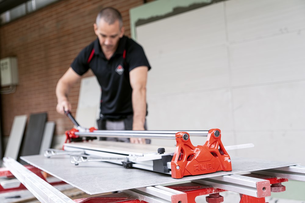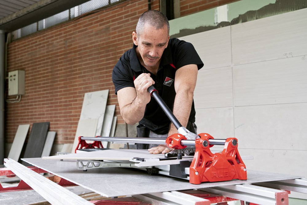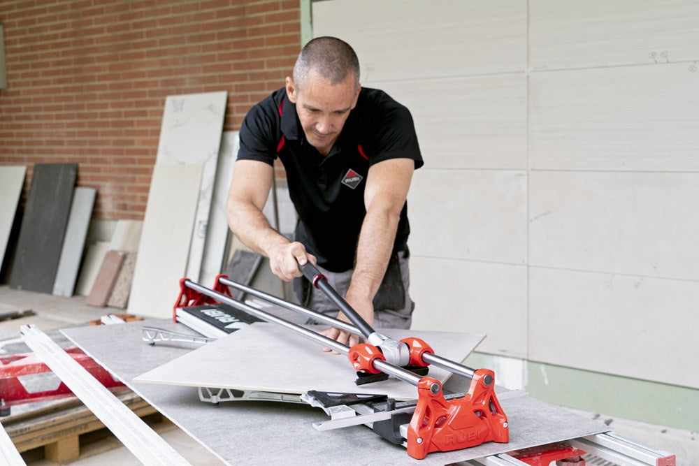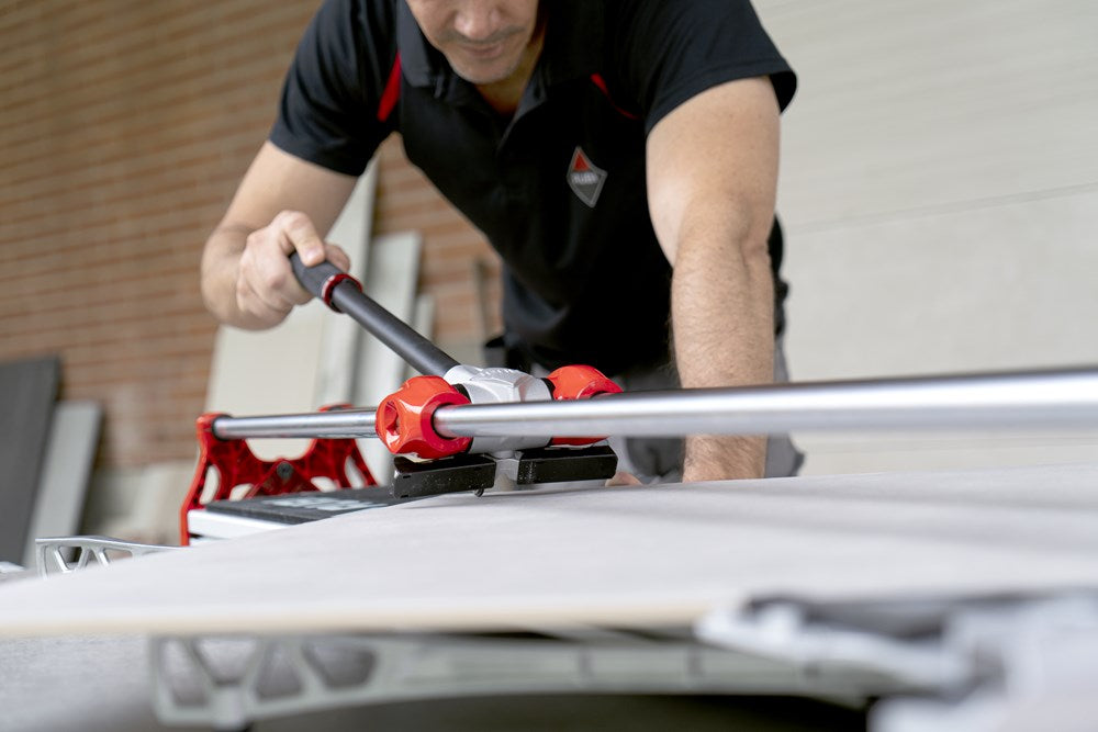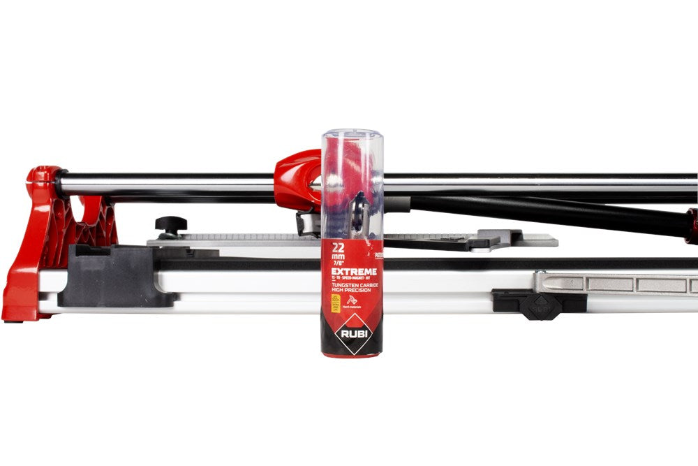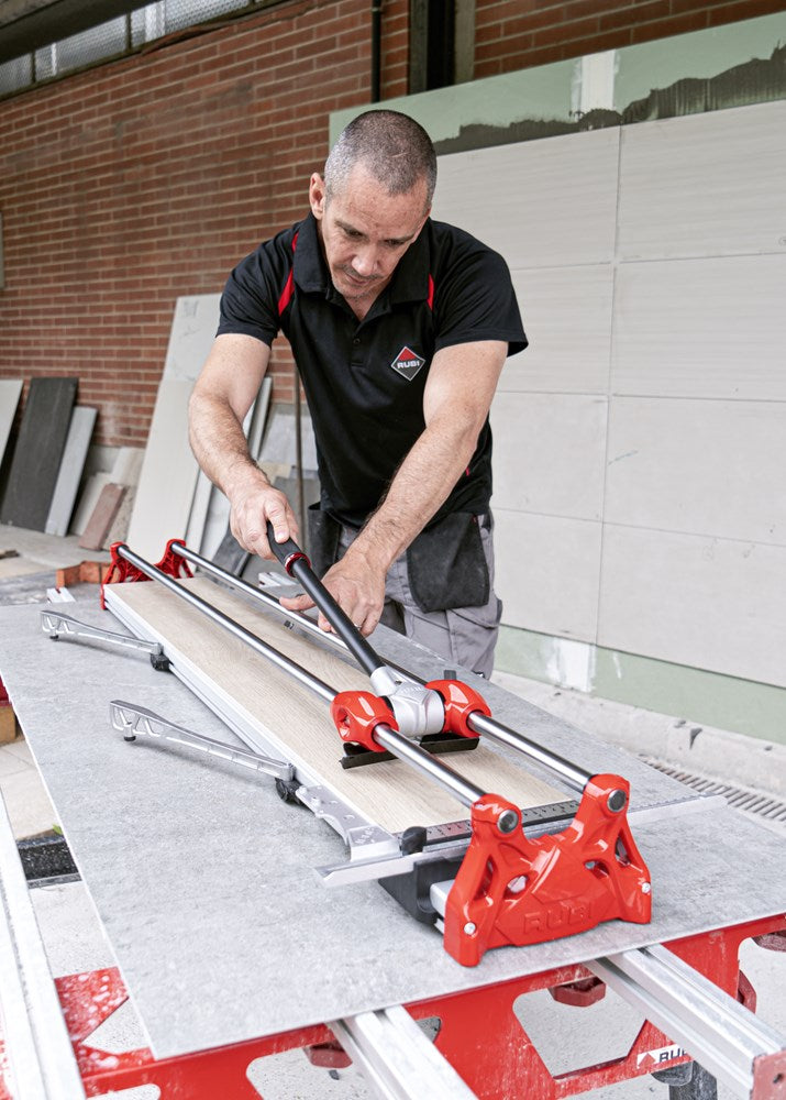 De tegelsnijder HIT-N is een robuuste en precieze keramische snijder, voor de meest veeleisende taken bij grootformaat keramische tegels.De HIT-N is ideaal voor het FREQUENT snijden van alle soorten keramische tegels (tegels, geëmailleerd aardewerk en porselein-aardewerk).Uitgerust met een krachtige mobiele separator, kan de HIT-N een maximaal breekkracht van 800 kg realiseren op het moment van breken. Bovendien bevat de separator het revolutionaire RUBI MAGNET-systeem, dat het mogelijk maakt, om met één hand te snijden en te breken. Dit zorgt voor een hogere werksnelheid en meer comfort bij het verwerken van grootformaat tegels.De schuifset van de HIT-N bevat lineaire lagers die zorgen voor meer soepelheid en comfort tijdens het krassen.Het systeem van dubbele geleiding, massief en verchroomd en gerectificeerd staal met een diameter van Ø 20 mm, biedt niet alleen een grotere weerstand tegen buiging, maar zorgt ook voor maximale zichtbaarheid van de snijlijn.De aluminium extrusiebasis met gesloten structuur zorgt voor een toename van de structurele RIGIDITEIT van het snijwerktuig zelf, terwijl het ook een grotere snijcapaciteit mogelijk maakt.De tegelsnijder HIT-N heeft 4 extra armen, gemaakt van aluminium, die het steunoppervlak vergroten bij het werken met grootformaat tegels en een zijaanslag die de meting en realisatie van repetitieve rechte sneden en de positionering van de tegels vergemakkelijkt op 45º.De handgreep van de HIT-N is soft-grip voor grotere ERGONOMIE en COMFORT van de professional.Het merk RUBI staat bekend om zijn grote duurzaamheid en de kwaliteit van zijn gereedschappen. RUBI produceert al meer dan 65 jaar alleen producten met een hoge duurzaamheid en weerstand, om de beste prestaties te leveren onder