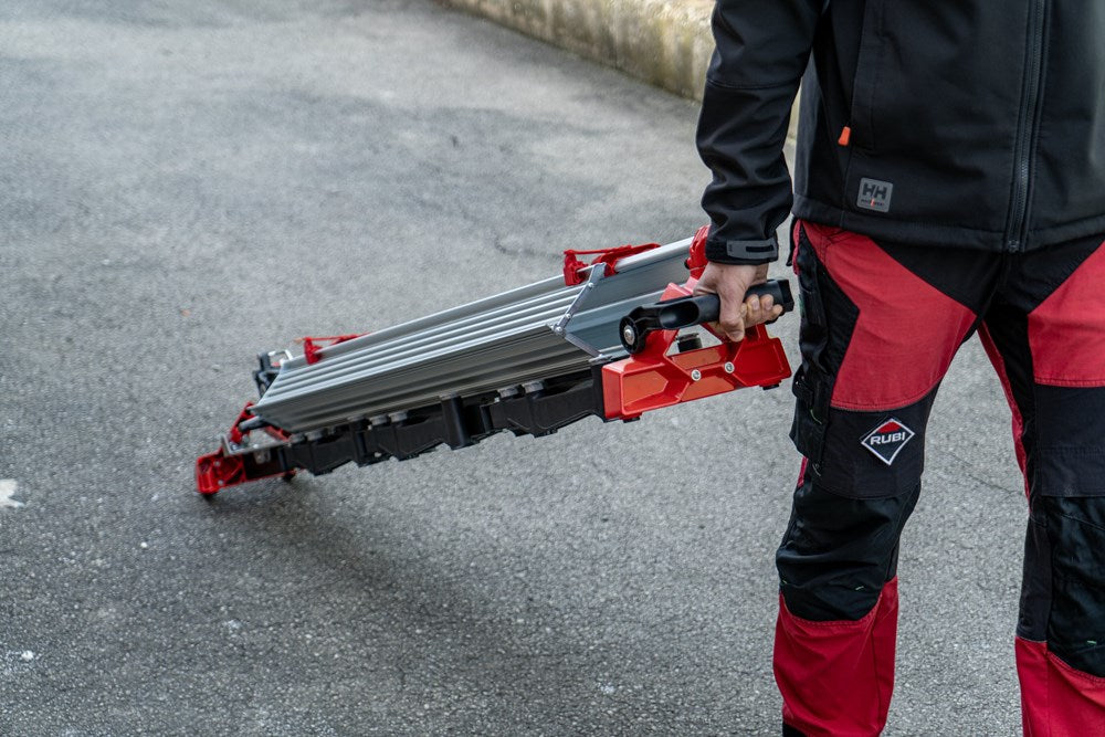 • Robuust en opvouwbaar. De tandem “geleider-chassis” maakt de TK robuuster en vermindert het doorbuigen van de assemblage. Het ontwerp van de machine in opgevouwen toestand maakt hem gemakkelijk te vervoeren.