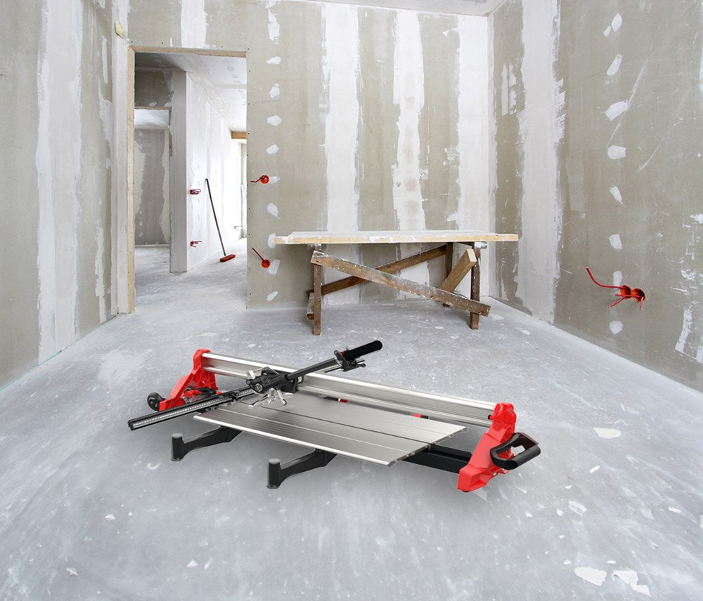 TK tegelsnijders zijn een nieuw concept in het snijden van keramische tegels, het is de enige tegelsnijder met een ASYMMETRISCH geplaatste enkele geleider op de markt. Met een combinatie van geavanceerde materialen en een innovatief ontwerp is de TK van RUBI de meest geavanceerde tegelsnijder op de markt. Het speciale ontwerp met asymmetrisch geplaatste geleider biedt een uitstekend zicht op het snijwieltje tijdens het snijden, en is ook uitgerust met speciale lagers die geschikt zijn voor zware belastingen en een soepele en precieze geleiding bieden. Met zijn maximale vermogen van 1500 kg en zijn exclusieve en gepatenteerde breekmechanisme kan de professionele tegelzetter de tegelsnijder met één hand bedienen, waardoor het werken met grote formaten keramische tegels wordt vergemakkelijkt. Voor het breken van het keramiek bestaat het uit een trekker- en ratelsysteem dat een gevoel van veiligheid en kracht biedt bij het breken van het keramiek. Het omvat een verwijderbare aluminium vooraanslag voorzien van een magnetisch systeem, waarmee we de precisie in de meting verbeteren en mogelijke bewegingen of verkeerde uitlijningen voorkomen. Het bevat ook een extra schroefbevestiging om de vooraanslag volledig vast te zetten. De TK tegelsnijders zijn speciaal ontworpen om te werken met grote formaten tegels. Verkrijgbaar in 4 verschillende modellen, is de TK compatibel met formaten tot 160 cm in rechte snede of 110x110 cm diagonaal. Zijn grote snijcapaciteit en grote kracht stellen hem in staat stukken tot 21 mm dik* te breken, met de mogelijkheid om de werkpositie aan te passen en het vermogen van de machine aan te passen aan de dikte van het materiaal. Voor een betere bruikbaarheid, heeft de nieuwe TK een zijaanslag van 30 cm lang, waardoor een groot ondersteuningsoppervlak wordt geboden voor het maken van repetitieve sneden in grote stukken. De TK tegelsnijders zijn compatibel met de volledige nieuwe reeks PLUS SLS (Secure Lock System) snijwieltjes van RUBI, en worden geleverd met één Ø 22 mm EXTREME snijwieltje. * Er zijn enkele keramische materialen met diktes groter dan 15 mm die, vanwege hun fysieke eigenschappen, mogelijke interne spanningen of afwerkingen, moeilijk handmatig te snijden zijn. Het is raadzaam om enkele proefsnedes te maken om de compatibiliteit van het product te bepalen.