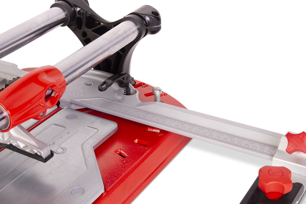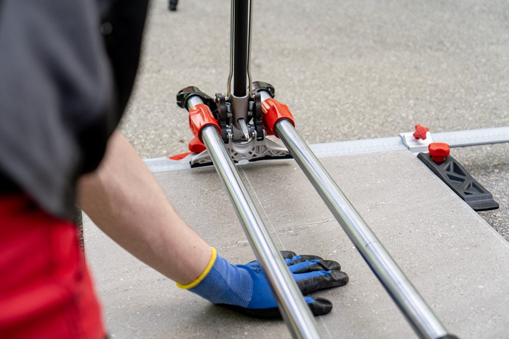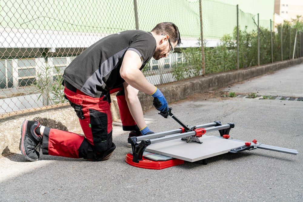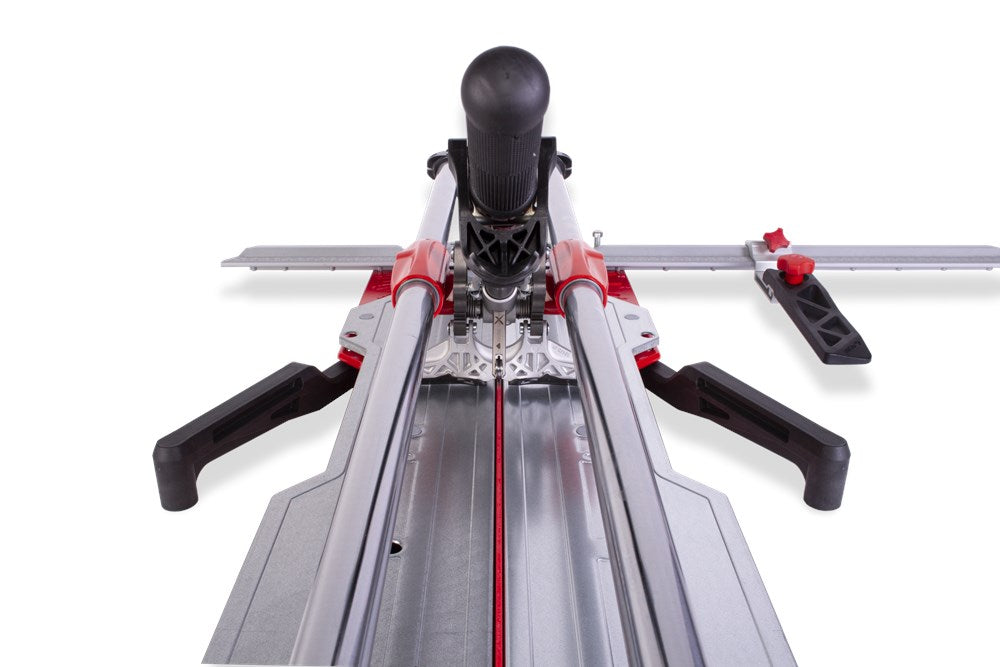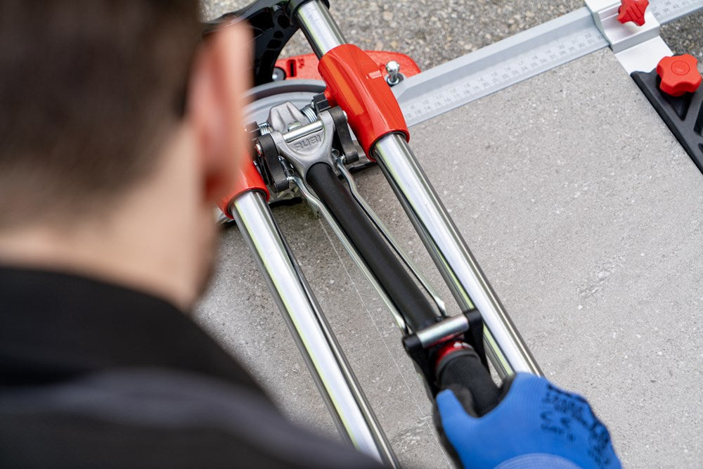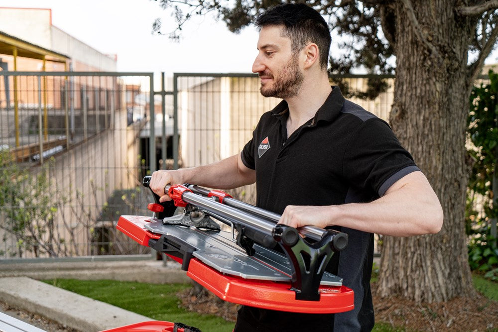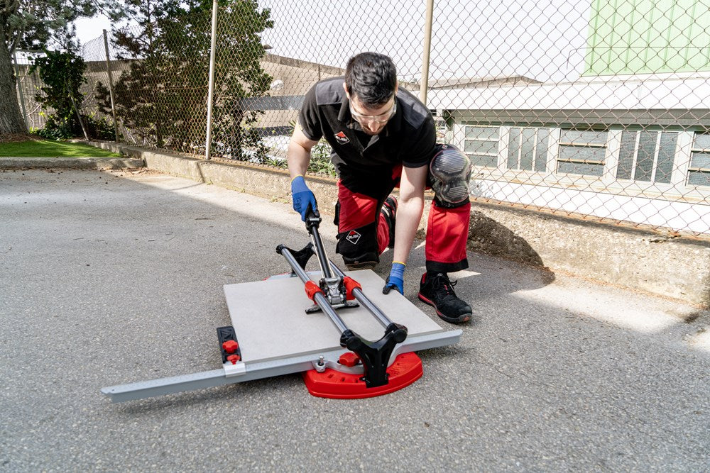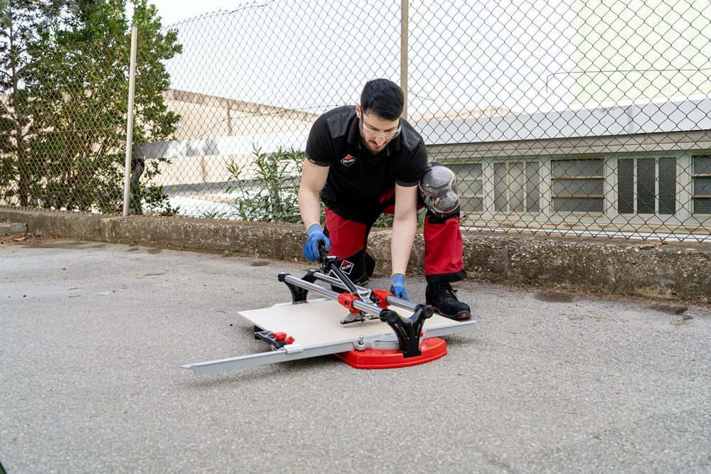 De professionele tegelsnijders uit de TX-MAX serie zijn perfect voor het INTENSIEF snijden van alle soorten keramische tegels. Dankzij hun krachtige mobiele breker en hun vooraanslag met centrale draai-as maken de TX-MAX-modellen een eenvoudige en snelle uitvoering van hoeksneden (van 0º tot 45º) mogelijk, vooral in porseleinen tegels. Dankzij de grote breekkracht (tot 1200 kg) kunnen de TX-MAX tegelsnijders ook gres heel goed aan.De 30 mm diameter van de stalen geleiders en de extra lange aluminium snijkop zorgen voor een indrukwekkende robuustheid, waardoor de modellen met een hogere snijcapaciteit (TX-1020 MAX en TX-1250 MAX) optimaal tot hun recht komen.De geavanceerde positie van het snijwieltje verhoogt de zichtbaarheid tijdens het snijden en het breken, en de breekvleugel is voorzien van een afneembare beschermer die het mogelijk maakt om markering op de meest delicate oppervlakken te voorkomen.De vergrendeling van de breekvleugel, door middel van een ratelmechanisme, en de ontgrendeling, door middel van een trekker, maakt het mogelijk om met slechts één hand te snijden en te breken.Als aanvulling op de zwevende breekplaten zijn de modellen 710 en 1020 uitgerust met twee extra zijsteunen om het steunvlak voor grootformaat tegels te vergroten. Model 1250 heeft 4 steunen (twee aan elke kant).Alle modellen uit de TX-MAX-serie zijn voorzien van een zijaanslag voor repeterende sneden en smalle stroken, ook zijn twee snijwieltjes (8 mm en 22 mm EXTREME) en de transportkoffer inbegrepen. De TX-MAX tegelsnijders zijn compatibel met het volledige PLUS snijwieltjesassortiment van RUBI. Het model TX-1250 MAX bevat naast de koffer ook handgrepen en wielen voor eenvoudige hanteerbaarheid op de werkplek.*Er zijn enkele keramische materialen, met een dikte van meer dan 15 mm, die vanwege hun fysische eigenschappen, mogelijke interne spanningen of afwerking moeilijk te snijden zijn. Het wordt aangeraden om enkele proefsneden te maken te maken om de comptabiliteit van het product te bepalen.