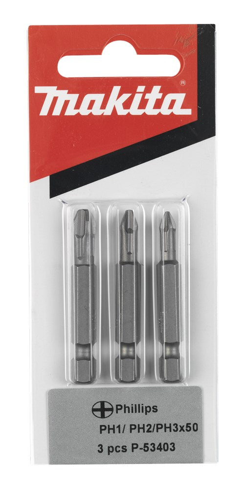 Makita Schroefbitset PH1/2/3X50mm 1/4 - P-53403