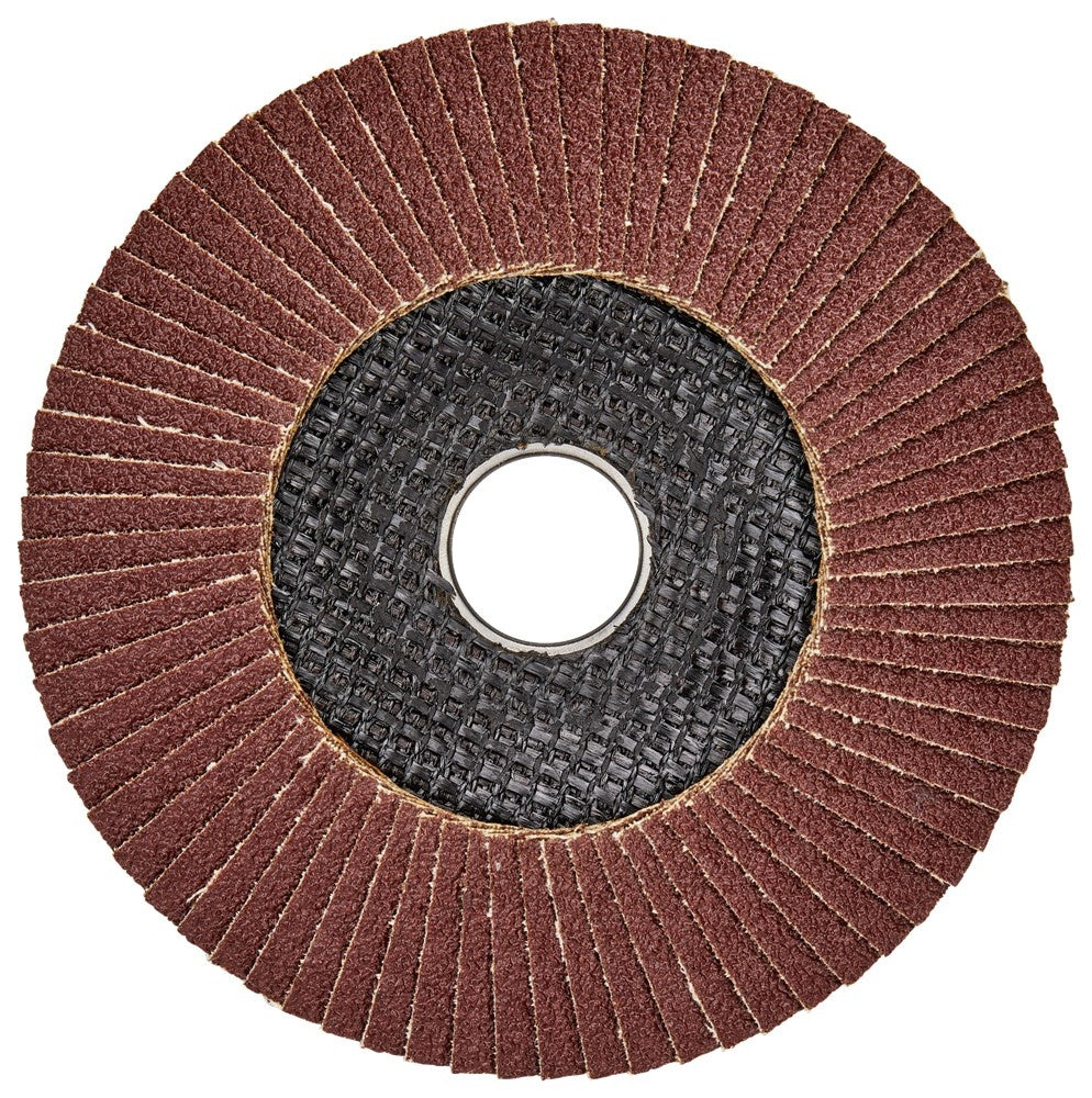 Lamellenschuurschijven zijn voorzien van lamellen bestaande uit een rug van vezelstof en korrels. Deze zijn geplaatst op een schijf met een rug van glasvezels. Doordat de schijf opgebouwd is uit lamellen is deze veerkrachtiger dan een schuurschijf en minder agressief voor het te bewerken materiaal. Bijzonder geschikt voor het schuren van lasnaden. Soorten korrel: Aluminiumoxide [A]: Zeer geschikt voor staal. Geschikt voor aluminium, non-ferro metalen en kunststoffen. Zirkoniumoxide [Z]: Zeer geschikt voor RVS. Geschikt voor staal, aluminium en non-ferro metalen. Keramisch aluminiumoxide [Ce]: Zeer geschikt voor RVS. Geschikt voor staal, aluminium en non-ferro metalen. Siliciumcarbide [S]: Zeer geschikt voor mortel en steen. Vom van de schijf: Vlakke schijven gebruik je voor het vlakschuren van oppervlakken. Plaatst deze onder een hoek van 0-15° op het materiaal voor een optimaal gebruik. Schuine schijven gebruik je voor het schuren van lasnaden, slijpen van vellingkanten en ontbramen. Plaats deze onder een hoek van 10-25° op het materiaal voor een optimaal gebruik. Korrels: 36/40: Lasnaadbewerking en vellingkanten. 60: Lasnaadbewerking, vellingkanten, ontbramen en vlakschuren. 80: Ontbramen en vlakschuren. 120: Vlakschuren. Voordelige Makita aluminiumoxide lamellenschuurschijf schuin met glasvezel versterkte rug. Diameter 125mm met korrel 80. Zeer geschikt voor: metaal. Geschikt voor: kunststof, non-ferro metalen en hout. Voor intensief gebruik raden wij de lamellenschijf D-27109 aan. Tevens verkrijgbaar in voordelig 10-pack D-63498-10.