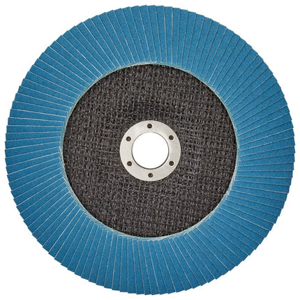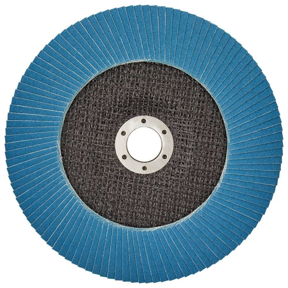 Lamellenschuurschijven zijn voorzien van lamellen bestaande uit een rug van vezelstof en korrels. Deze zijn geplaatst op een schijf met een rug van glasvezels. Doordat de schijf opgebouwd is uit lamellen is deze veerkrachtiger dan een schuurschijf en minder agressief voor het te bewerken materiaal. Bijzonder geschikt voor het schuren van lasnaden. Soorten korrel: Aluminiumoxide [A]: Zeer geschikt voor staal. Geschikt voor aluminium, non-ferro metalen en kunststoffen. Zirkoniumoxide [Z]: Zeer geschikt voor RVS. Geschikt voor staal, aluminium en non-ferro metalen. Keramisch aluminiumoxide [Ce]: Zeer geschikt voor RVS. Geschikt voor staal, aluminium en non-ferro metalen. Siliciumcarbide [S]: Zeer geschikt voor mortel en steen. Vom van de schijf: Vlakke schijven gebruik je voor het vlakschuren van oppervlakken. Plaatst deze onder een hoek van 0-15° op het materiaal voor een optimaal gebruik. Schuine schijven gebruik je voor het schuren van lasnaden, slijpen van vellingkanten en ontbramen. Plaats deze onder een hoek van 10-25° op het materiaal voor een optimaal gebruik. Korrels: 36/40: Lasnaadbewerking en vellingkanten. 60: Lasnaadbewerking, vellingkanten, ontbramen en vlakschuren. 80: Ontbramen en vlakschuren. 120: Vlakschuren. Makita zirkonium-aluminiumoxide lamellenschuurschijf vlak met glasvezel versterkte rug. Diameter 180mm met korrel 120. Zeer geschikt voor: metaal. Geschikt voor: RVS en non-ferro metalen. Tevens verkrijgbaar als lamellenschuurschijf schuin D-27567.