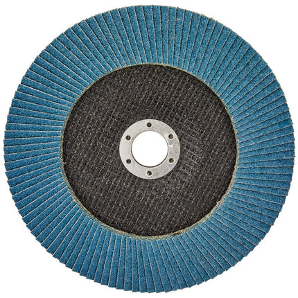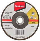 Lamellenschuurschijven zijn voorzien van lamellen bestaande uit een rug van vezelstof en korrels. Deze zijn geplaatst op een schijf met een rug van glasvezels. Doordat de schijf opgebouwd is uit lamellen is deze veerkrachtiger dan een schuurschijf en minder agressief voor het te bewerken materiaal. Bijzonder geschikt voor het schuren van lasnaden. Soorten korrel: Aluminiumoxide [A]: Zeer geschikt voor staal. Geschikt voor aluminium, non-ferro metalen en kunststoffen. Zirkoniumoxide [Z]: Zeer geschikt voor RVS. Geschikt voor staal, aluminium en non-ferro metalen. Keramisch aluminiumoxide [Ce]: Zeer geschikt voor RVS. Geschikt voor staal, aluminium en non-ferro metalen. Siliciumcarbide [S]: Zeer geschikt voor mortel en steen. Vom van de schijf: Vlakke schijven gebruik je voor het vlakschuren van oppervlakken. Plaatst deze onder een hoek van 0-15° op het materiaal voor een optimaal gebruik. Schuine schijven gebruik je voor het schuren van lasnaden, slijpen van vellingkanten en ontbramen. Plaats deze onder een hoek van 10-25° op het materiaal voor een optimaal gebruik. Korrels: 36/40: Lasnaadbewerking en vellingkanten. 60: Lasnaadbewerking, vellingkanten, ontbramen en vlakschuren. 80: Ontbramen en vlakschuren. 120: Vlakschuren. Makita zirkonium-aluminiumoxide lamellenschuurschijf vlak met glasvezel versterkte rug. Diameter 180mm met korrel 40. Zeer geschikt voor: metaal. Geschikt voor: RVS en non-ferro metalen.