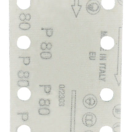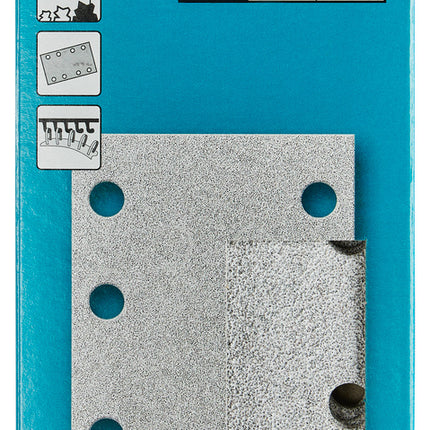 Dit Makita schuurvel van 80x133mm met korrelgrootte A80 is ontworpen voor medium afname en biedt uitstekende prestaties dankzij de aluminiumoxide coating. 10st