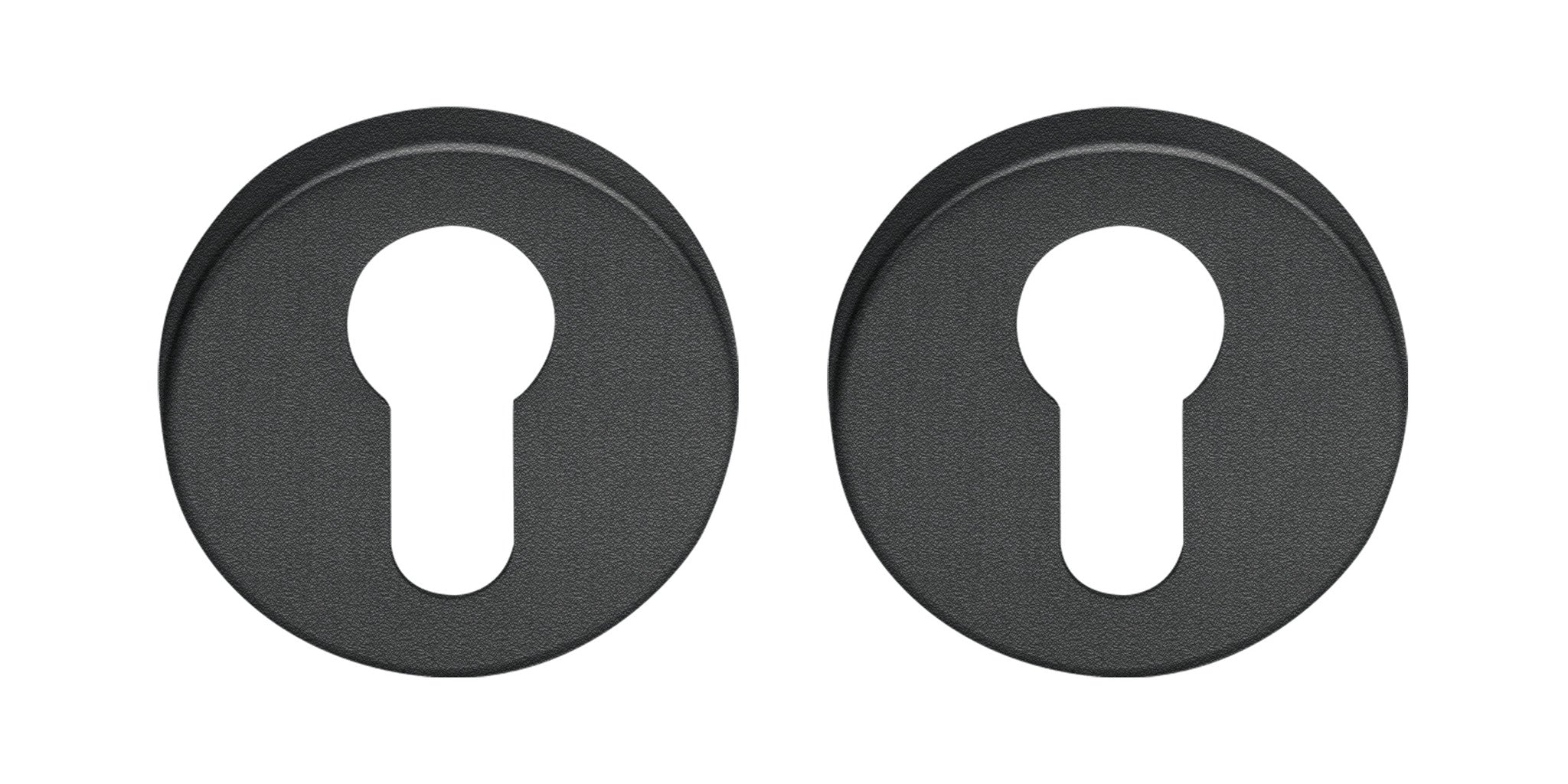 Deze kwalitatieve Sleutelrozet RVS is zwart RAL9005 gepoedercoat en geschikt voor intensief gebruik. De onderrozet is gemaakt van staal.