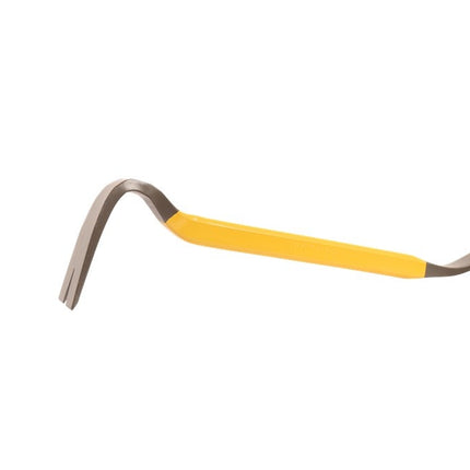 chroom vanadium staal met beitel en gebogen klauw, gelakt. Technische specificaties product code 102363, lengte 381 mm, gewicht 740 g, breedte (beitel) 52 mm, kleur geel, materiaal staal (chroom-vanadium), lengte (kop) mm, bewerking (oppervlaktebehand...