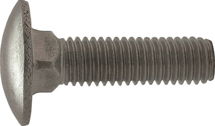 Rvs AISI 304 (A2) met halfronde kop. Zonder moer. Volgens DIN 603. Technische specificaties materiaal rvs verpakt per 100 st aandrijving zeskant model (kop) halfrond kwaliteit (materiaal) AISI 304 (A2) sleutelwijdte 10 mm DIN 603 draad (metrisch) M6 le...