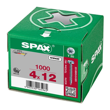 SPAX Spaanplaatschroef WIROX 4x12mm T20 Bolkop 1000st - 0201010400125