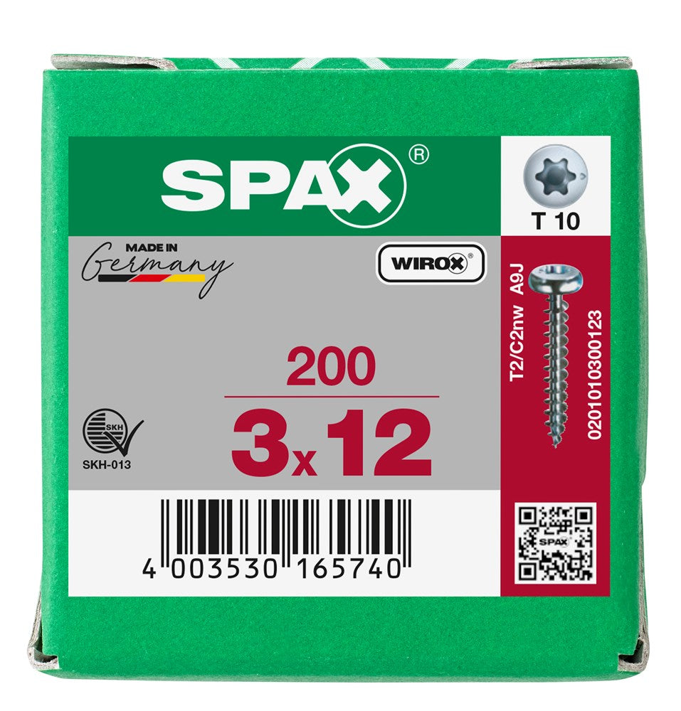SPAX SPAANPLAATSCHROEF 3,0X12 WIROX TORX T10 KP VOLDRAAD