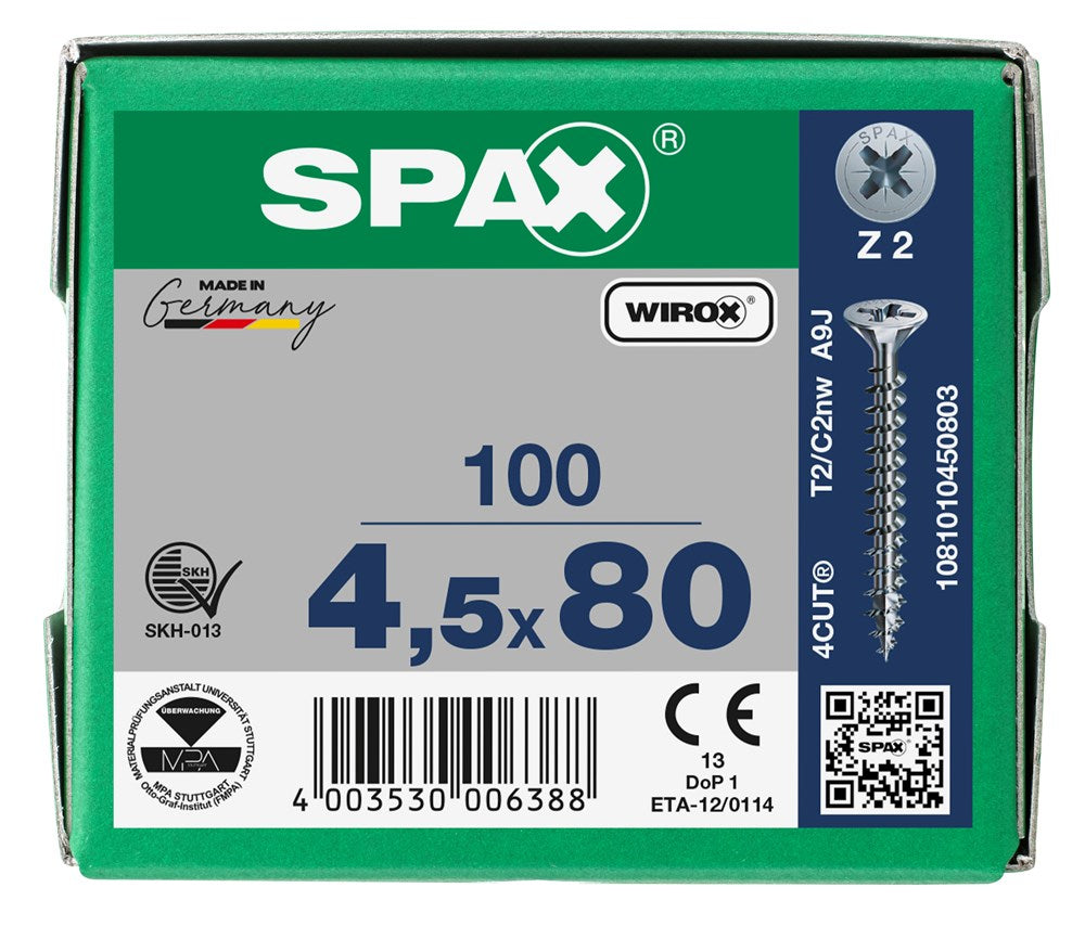 SPAX SPAANPLAATSCHROEF 4,5X80 WIROX KRUISKOP HP VOLDRAAD