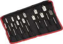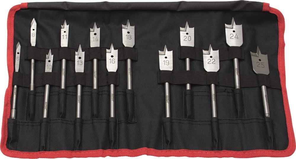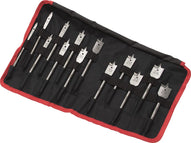 13-delig. Vervaardigd uit gelegeerd gereedschapsstaal. Met voorsnijder en zeskante kolf van 6 mm.Werklengte 110 mm. Totale lengte inclusief punt 155 mm. Inclusief foudraal..