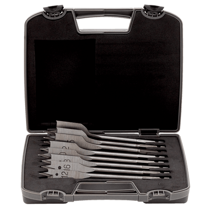 Speedborenset, 8-delig. Inhoud: 12, 16, 18, 20, 22, 25, 28, 32mm. Snel verwisselbare zeskant schacht van 6,35 mm. Platte houtboor (speedboor) voor het boren in hout. Koolstofrijk staal, volledig warmte behandeld. Lees meer