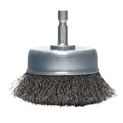 Makita komborstel met stift. Borstel met gegolfde draad. Deze komborstels zijn met hun minder dichte bezetting uitstekend geschikt voor het reinigen en verwijderen van verf, roest, aanslag, schilfers of ontbramen van ijzer of staal.