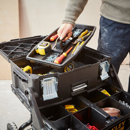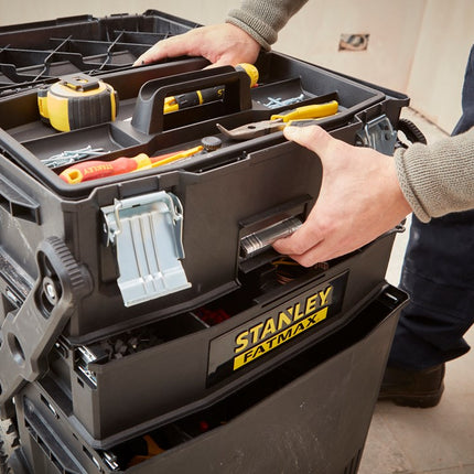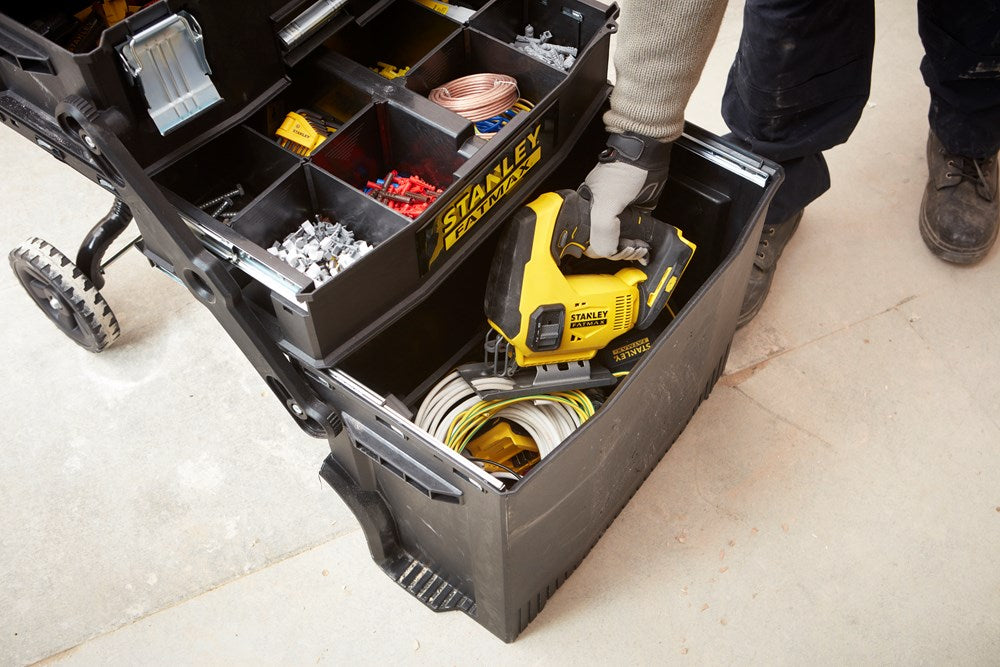 De FatMax Gereedschapswagen Cantilever is ideaal voor iedere monteur! Doordat hij uitschuifbaar is kun je op ieder moment overal bij. De robuuste wielen van de FatMax Gereedschapswagen Cantilever maken dit mogelijk.