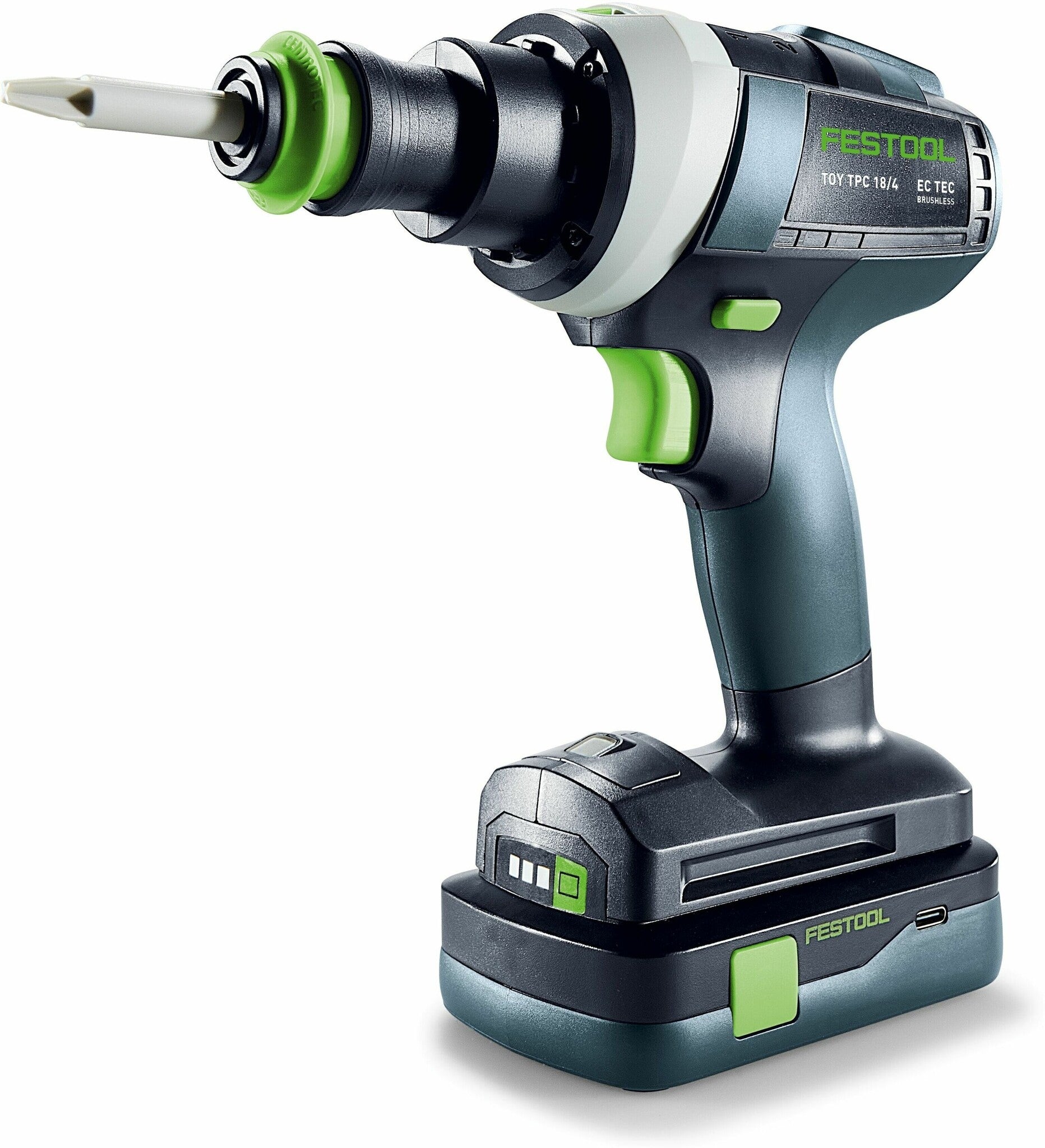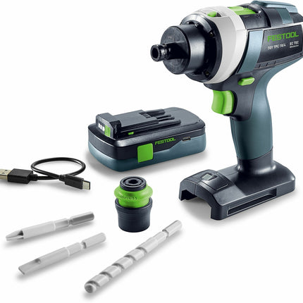 De Festool TY-TPC speelgoed accu schroefboormachine is een veilige en realistische replica van de QUADRIVE TPC 18/4 voor kinderen, compleet met geluidseffecten en een USB-C oplaadbare accu
