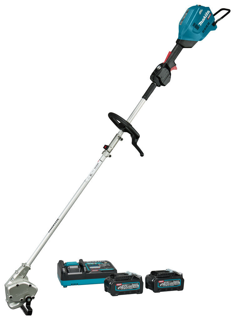 Combisysteem 40V inclusief 2x accu's en lader, geleverd in Mbox. Standaard inbegrepen met Draagriem, Gereedschapszak, Inbussleutel 4mm, Opzetstuk Onkruid Schoffel, Startset XGT DC40RB / 2x BL4050F.