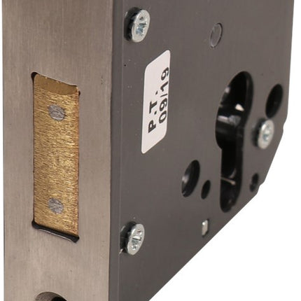 Zware serie profielcilinder insteekslot, geschikt voor utiliteitsbouw. Messing nachtschoot met 2 stalen beveiligingspennen. Dichte antraciet gelakte slotkast van 86x88,5x16,5 mm. Voorzien van afgeronde voorplaat 140x25x4 mm. Toepassen met veiligheidss...