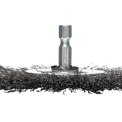 Makita vlakborstel met stift. Borstel met gegolfde draad. Deze vlakborstels zijn met hun open bezetting uitstekend geschikt voor het ontbramen, ontlakken, ontroesten en reinigen van ijzer en staal.