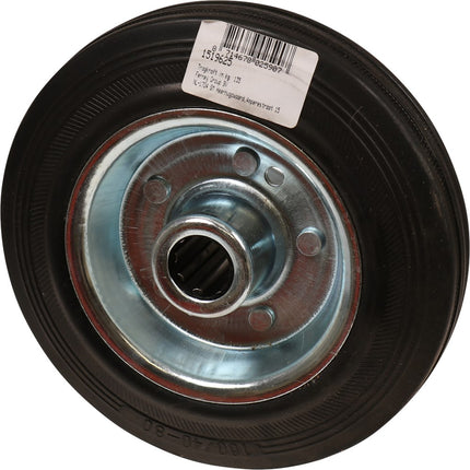 Zwart rubber wiel met staalverzinkte velg en rollager. Lees meer