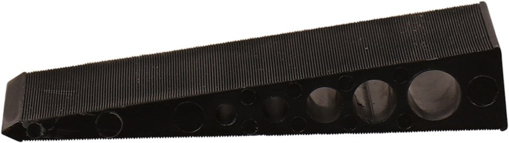 Polypropyleen met glasvezel versterkte wiggen voor stelwerk. Verpakt in krimpfolie. Technische specificaties lengte 100 mm kleur zwart materiaal polypropyleen verpakt per 25 st breedte 45 mm dikte 18 mm