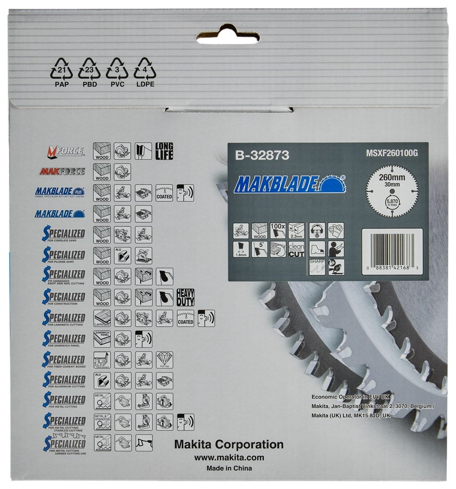 Makita Zaagb Hout 260X30X2,3 100T 5G - B-32873