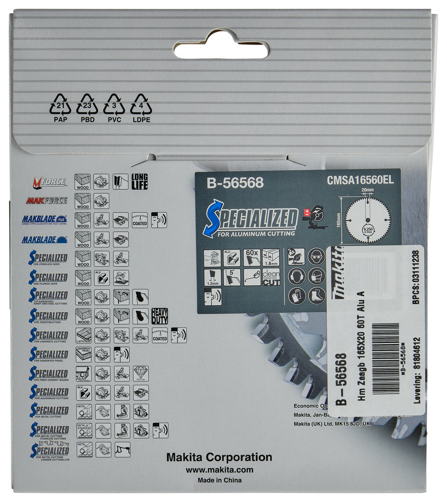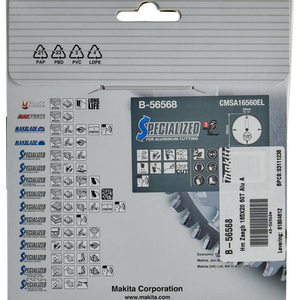 Makita Zaagblad Aluminium 165x20x1,8 60T 5G - B-56568