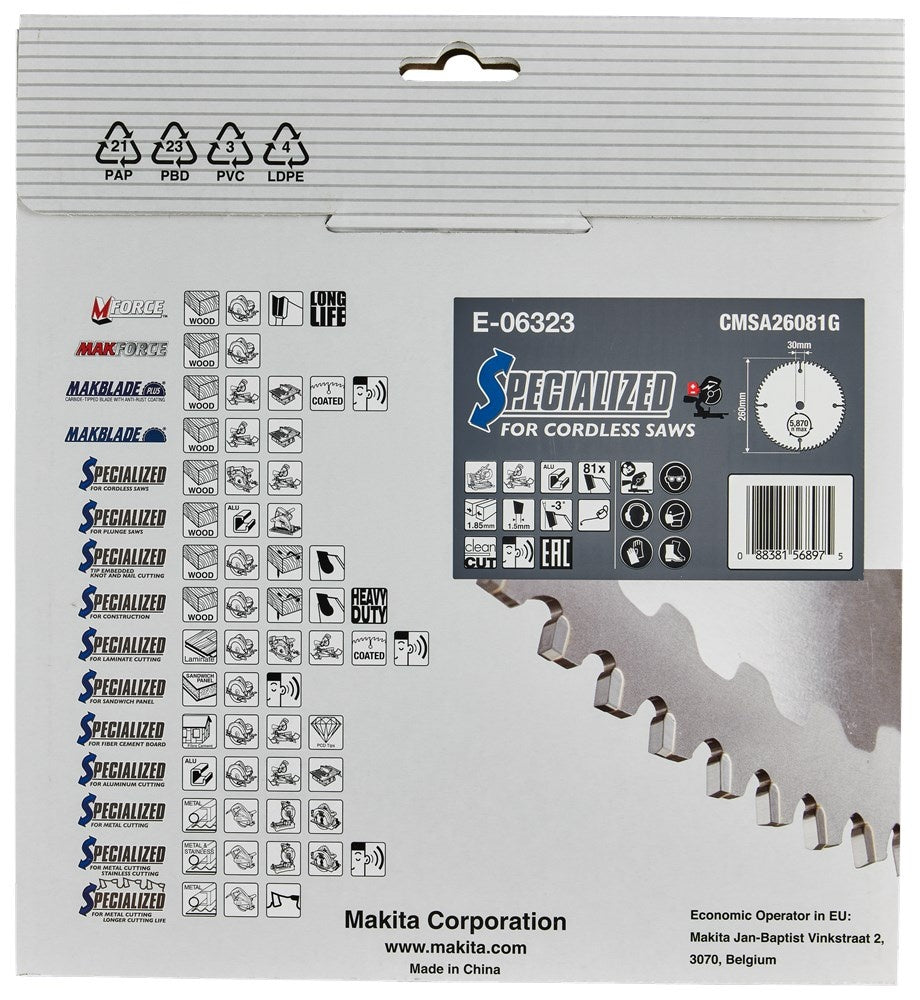 Makita Zaagblad Aluminium 260x30x1.85mm 81T 3G - E-06323