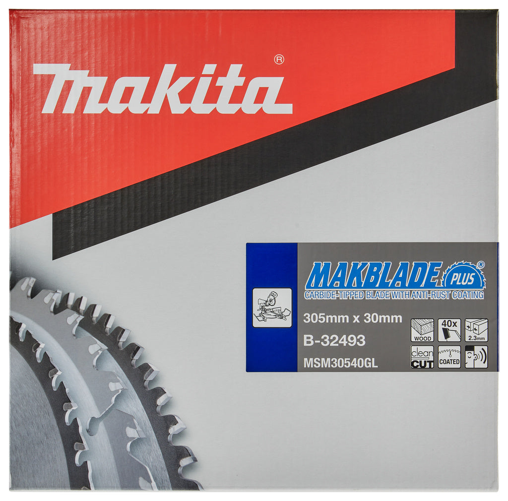 Zaagblad 305x30x2.3mm 40T van Makita is ontworpen voor nauwkeurige zaagsneden in diverse houtsoorten.