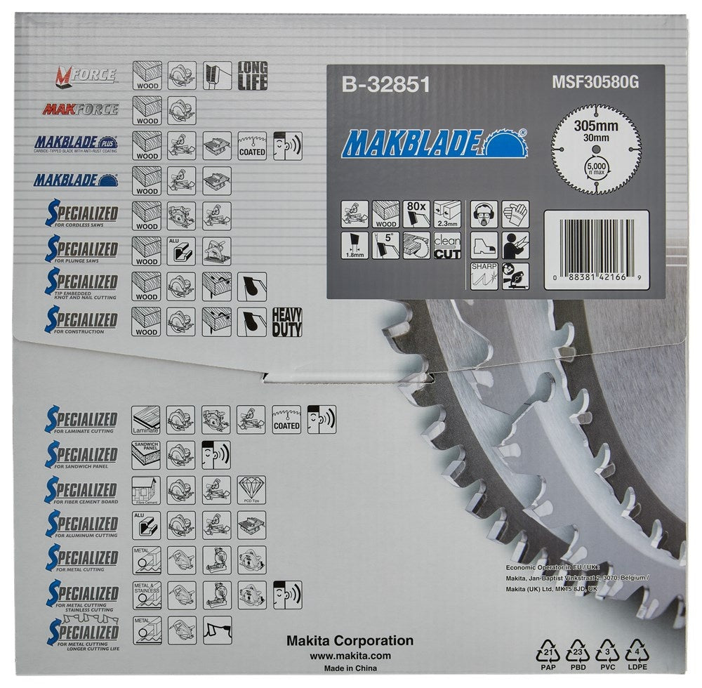 Makita Zaagblad Hout 305x30x2,3mm 80T 5G - B-32851