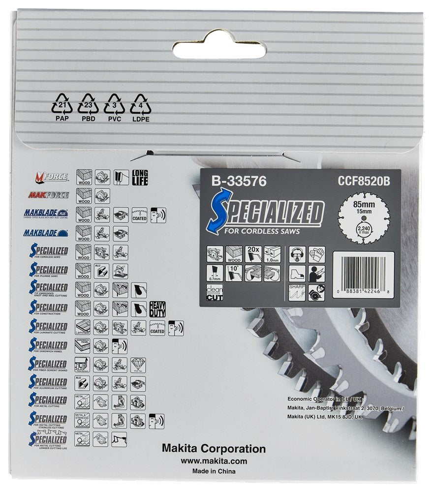 Makita Zaagblad Hout 85x15x1.0 20T 10G - B-33576